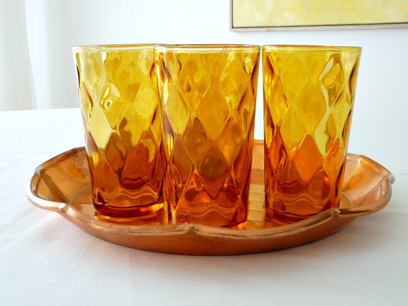 Geeze!! Your finds are out of this world! I love how the copper tray makes the amber glasses look ombre!