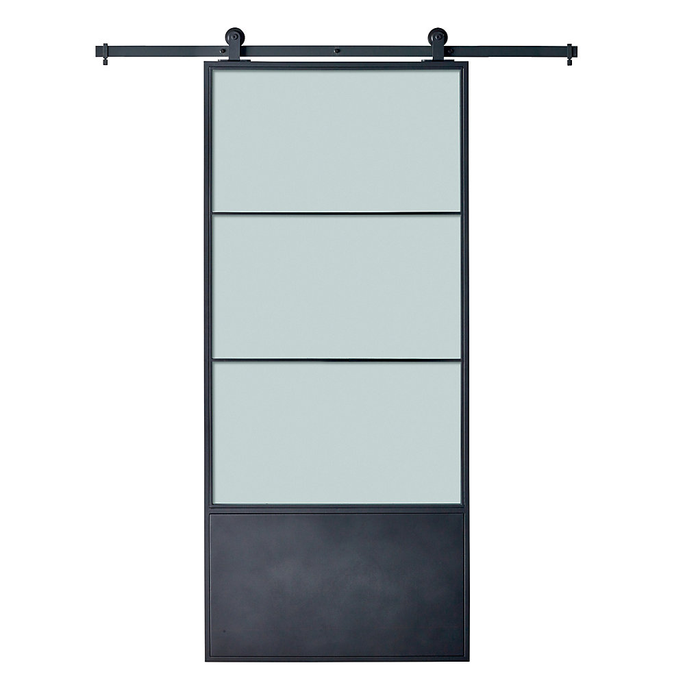 In a funny twist of fate, my friends at The Home Depot Canada reached out just as I was finishing up my ORC plans and asked if I could use this Indoor Studio Cartier Black Metal Barn Door Kit. I actually wanted to replace the swinging door (which opens into the laundry room and takes up so much valuable floor space) with a sliding door but I just hadn’t gotten that far in my planning and figured I could always add one after the ORC was over. But this one fits perfectly and I love the black metal – it ties in darker elements from the rest of the house, like my charcoal grey floors (in the kitchen/entry/laundry room/powder room) and deep grey/black painted fireplace. Plus it’s frosted for privacy, but will still keep things airy. And, if someone is super stressed about not getting enough privacy with a sliding door, you have to walk through the laundry room to get to the powder room, so guests are welcome to close and lock the laundry room door too (which lots of people do anyway). I am so thrilled to gain valuable floor space in the laundry room!!