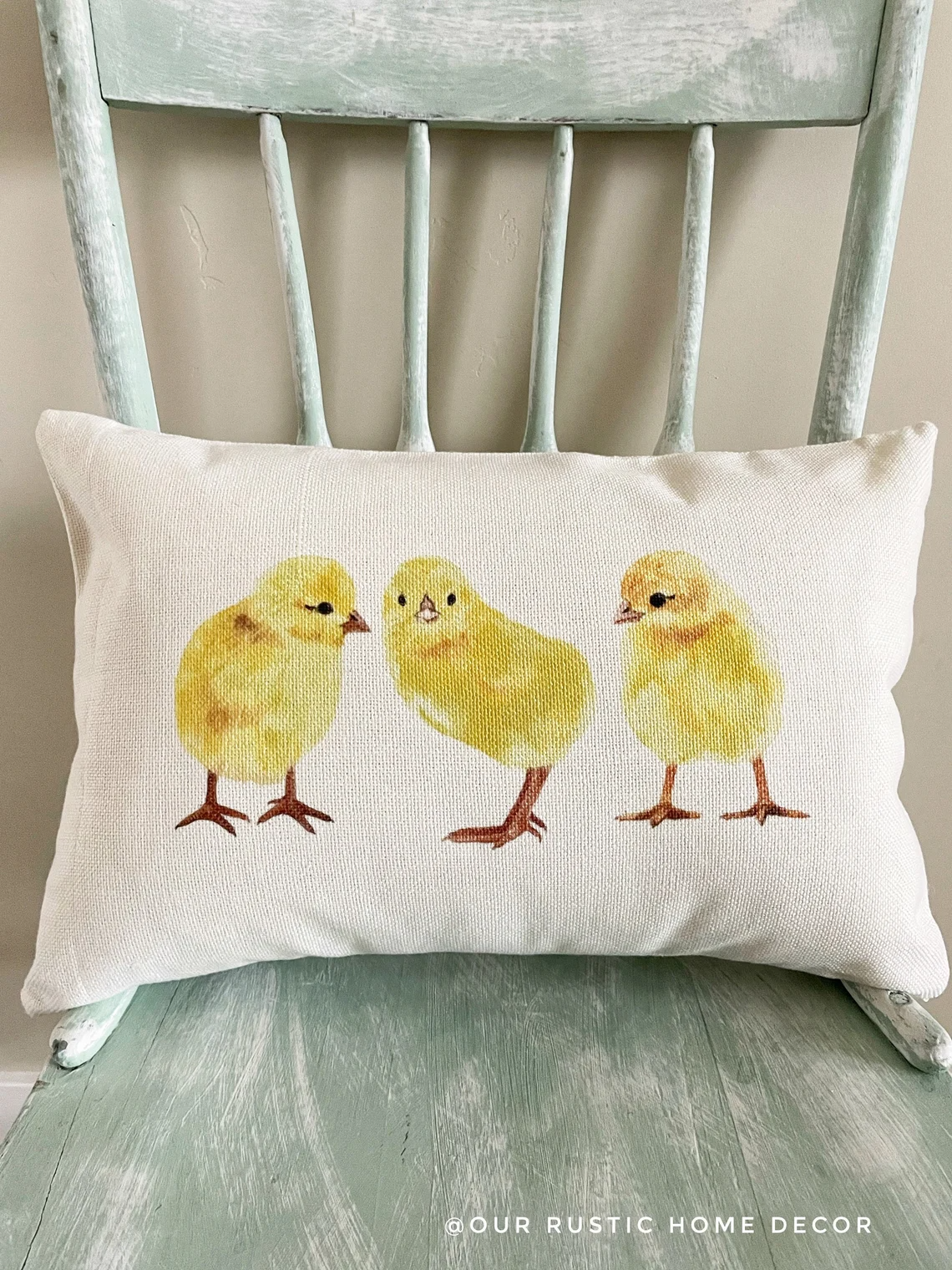 This pillow featuring spring chicks is just too cute! For an even MORE cutesy version, check out this one.