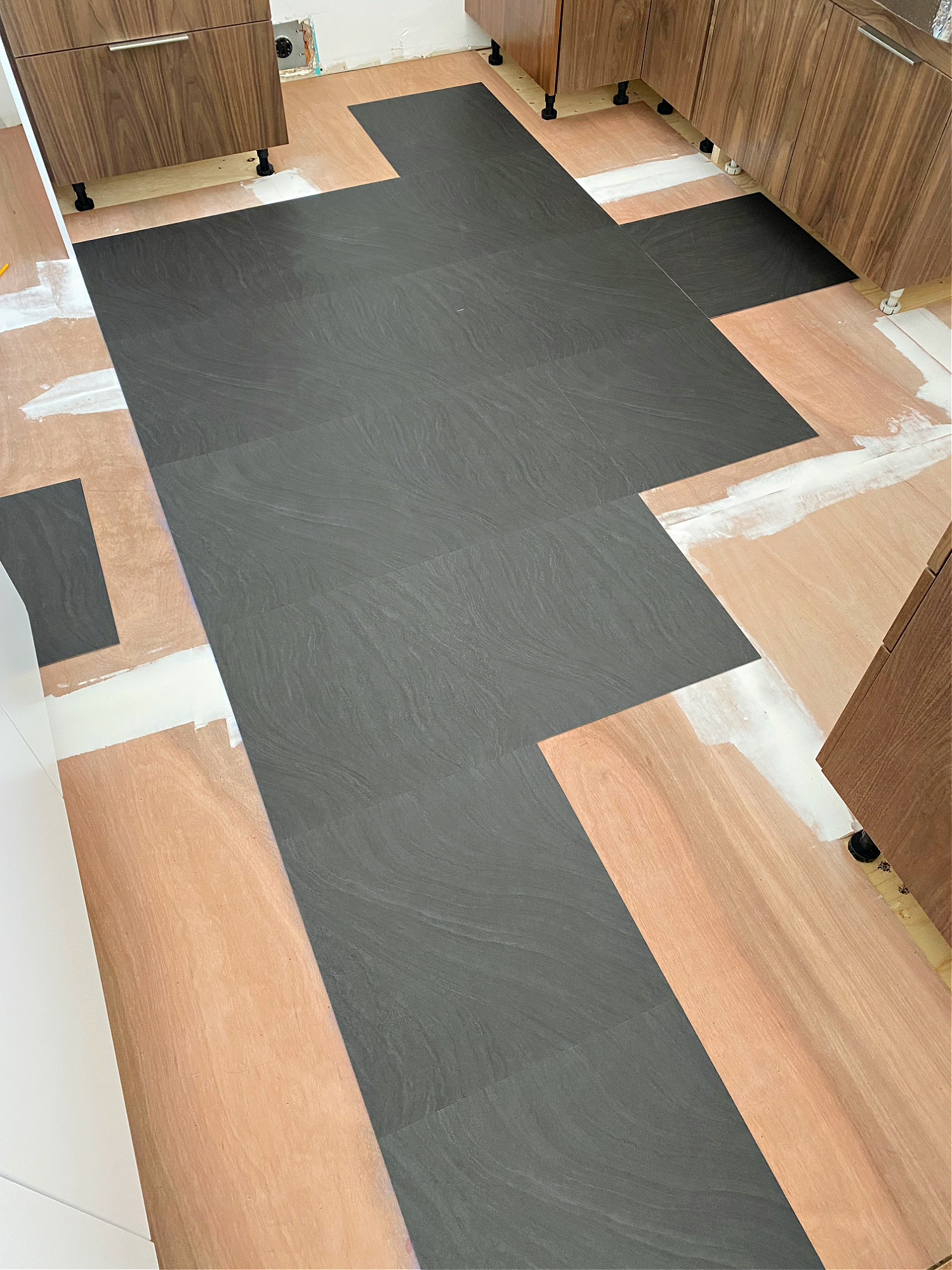 Dry Fitting the LVT Floor Tiles