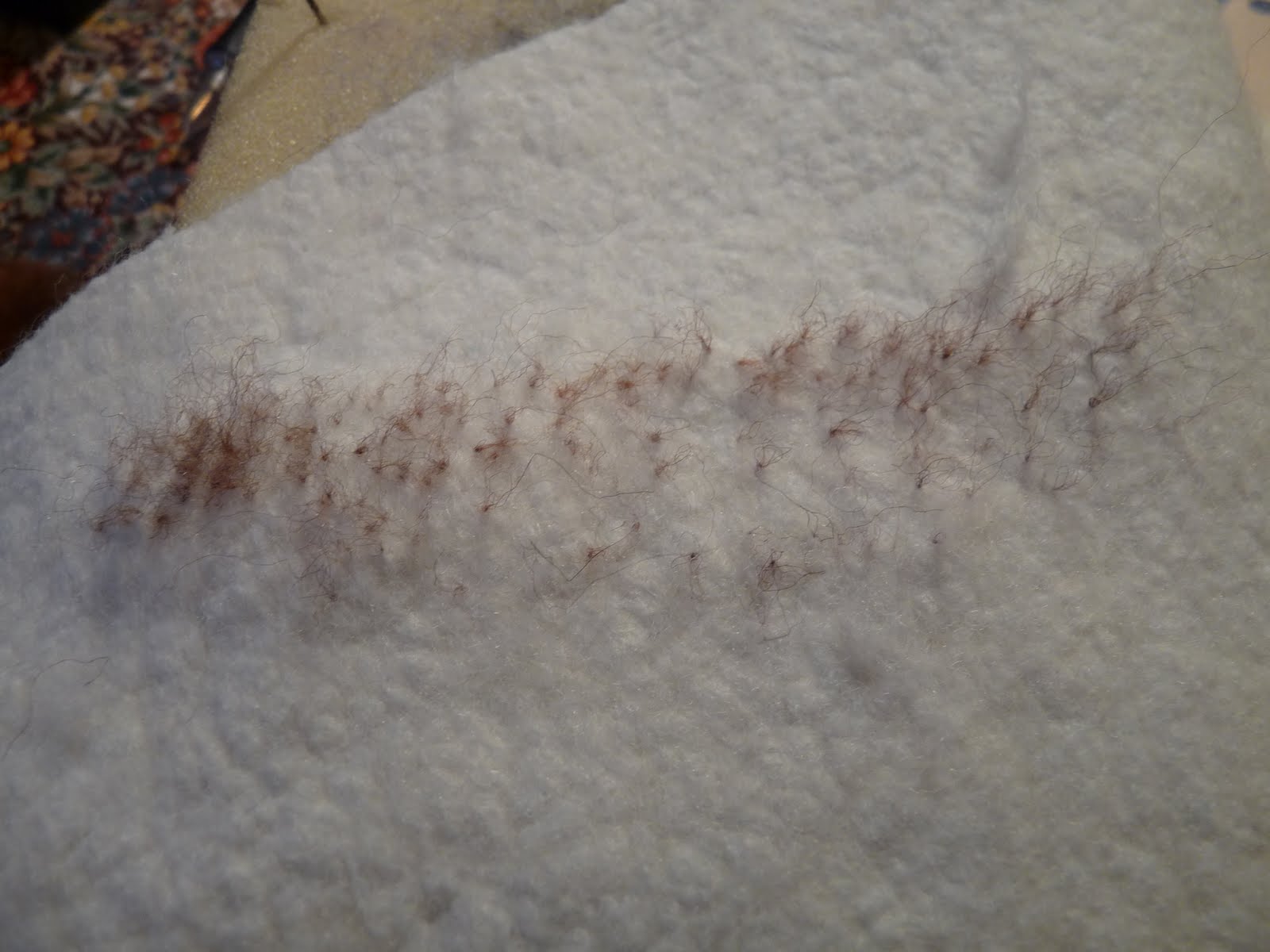 Here is what the back of the wool will look like after you have been needle felting for a bit: