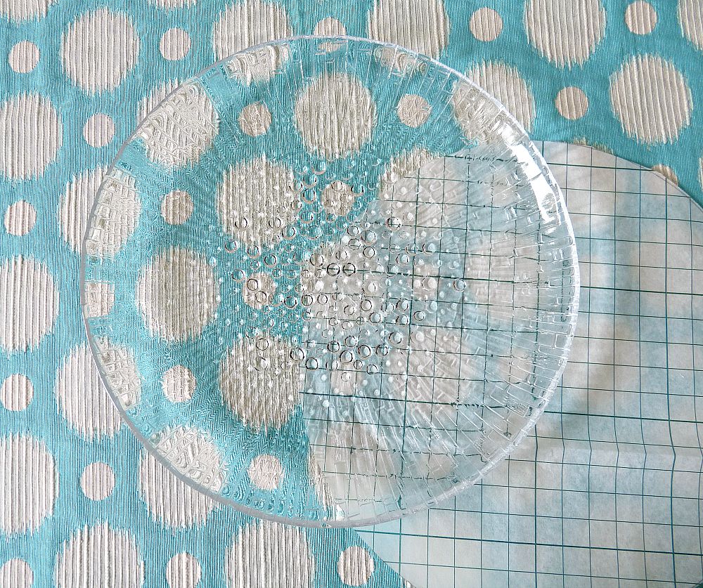 First we used a round plate – slightly larger than the size I wanted the finished pot holder to be – and traced it onto graph paper to use as a template.