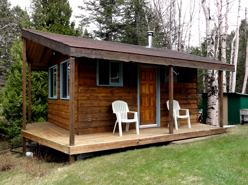 I just love how this bunkie makeover exterior turned out! It’s a work in progress because I’ll probably refinish the little mini deck at some point and I definitely have to update that light fixture and maybe make use of the hook for a hanging plant, but already it looks a little better. We really don’t have a lot of money to be fussing with this space – even though it needs a bathroom reno in a big way. We’ll chip away at it but the mission is to spend as little as possible…