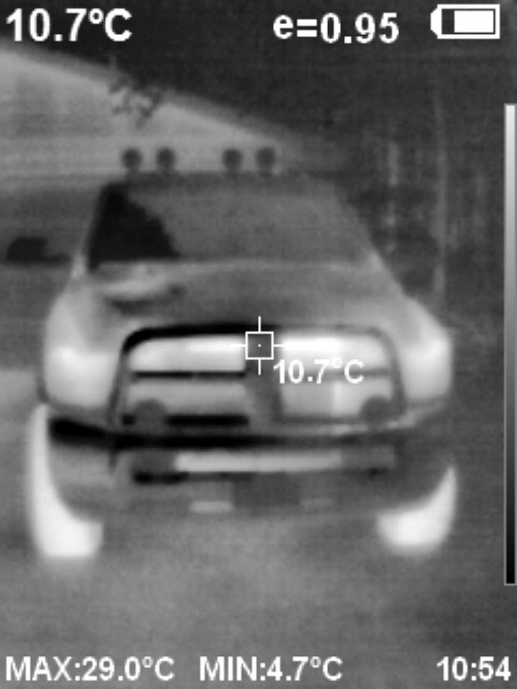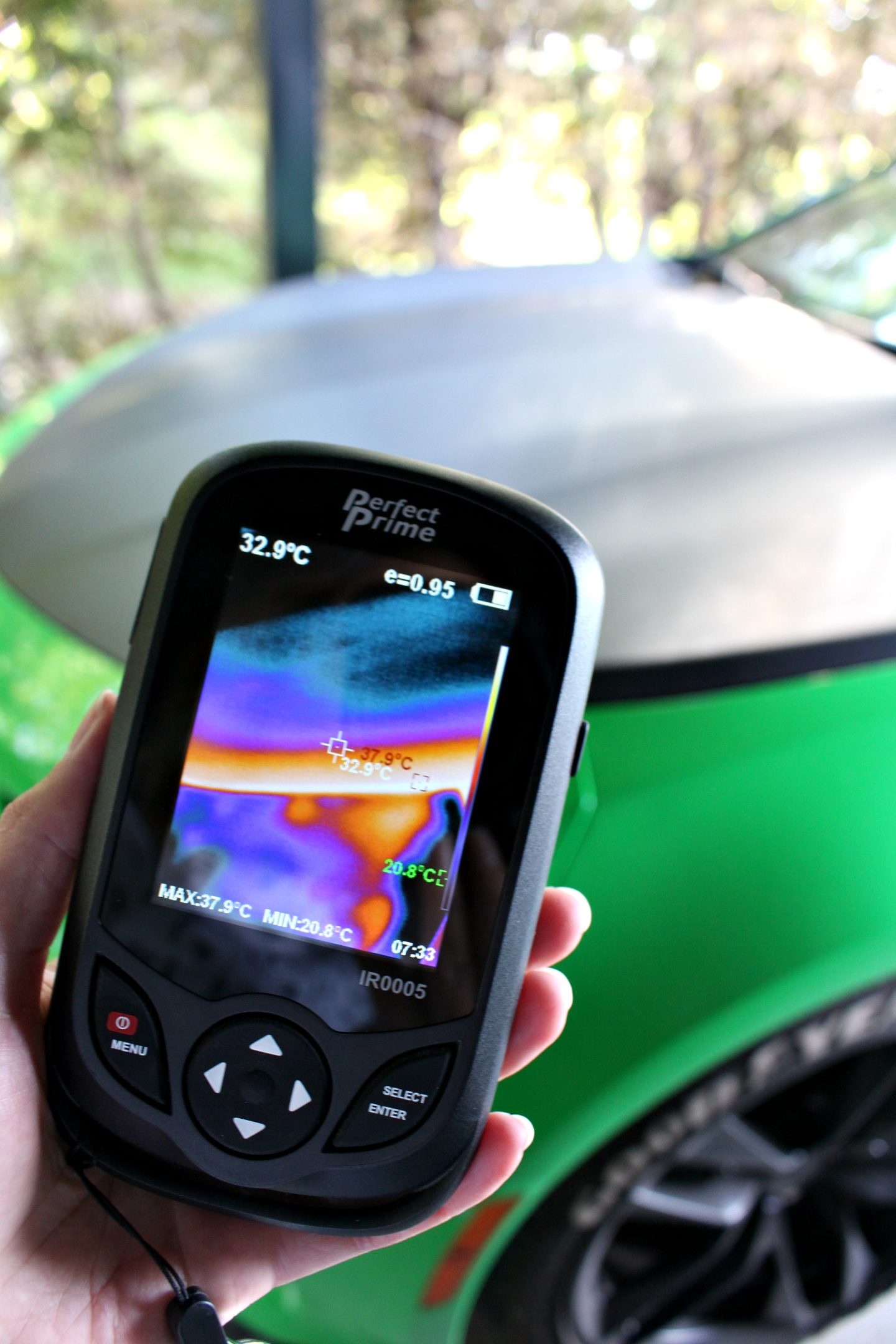 The IR camera can be used for automotive diagnostics to troubleshoot lots of things, like a cooling system and heat exchanger performance, exhaust system leaks, faulty electrical connections (which can get very hot).