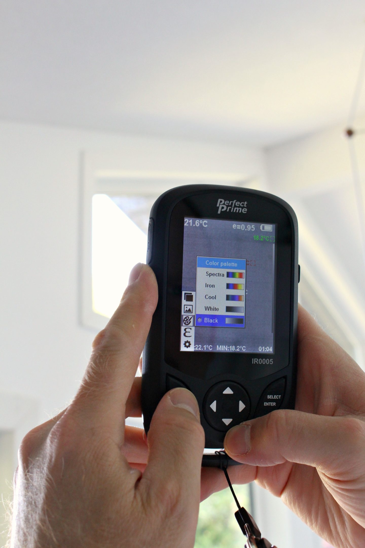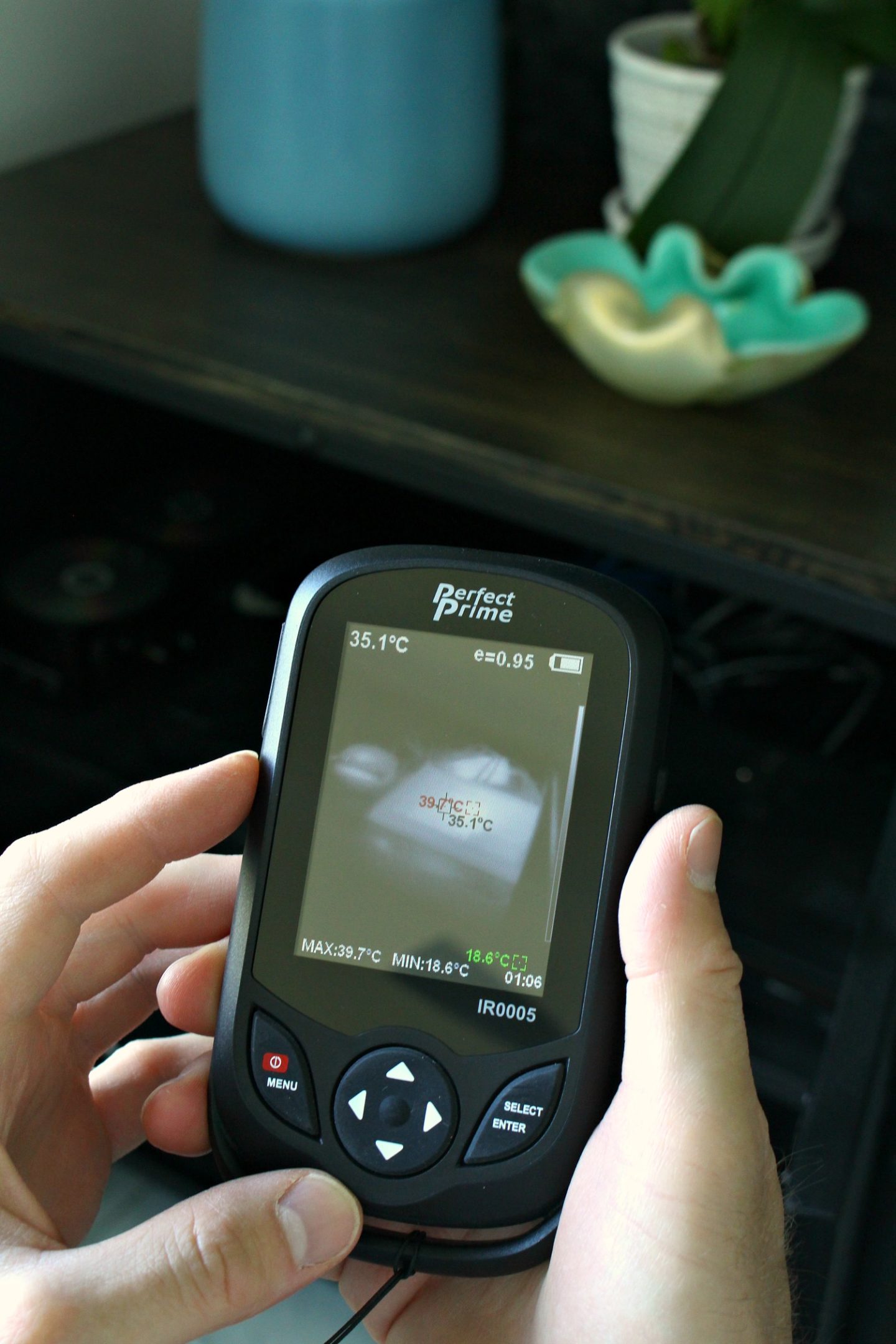 There are quite a few IR cameras on the market but PerfectPrime really offers something for everyone – and every price point. We would have preferred a better resolution, but this camera seemed like a more realistic purchase readers might make, given the price. And there’s a lot to like about the IR0005: we like that this unit is compact and can fit in a pocket. But for its compact size, it has a nice large display and pretty decent resolution for home use. The controls are very easy to pick up and you can change color palettes and emissivity settings quite rapidly. Uploading the images to a computer is just like transferring files from a flash drive or cell phone: just plug in the included USB cable and select the powered on camera as a drive. So overall, it’s very easy to use and easier on the wallet than the IR cameras with higher resolution. It’s been really effective for our home use!