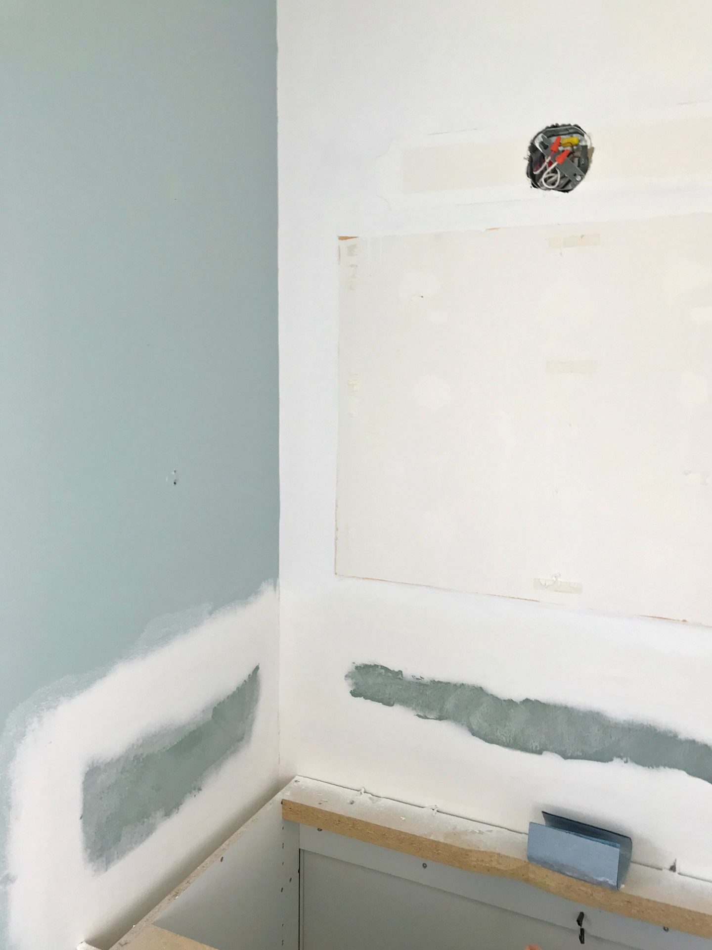 I used my cellphone for a lot of these photos, because I was covered in paint and wallpaper glue so I didn’t want to handle my camera, so excuse the meh quality – I promise everything looks so much better in real life! And I promise real-camera photos for the reveal.