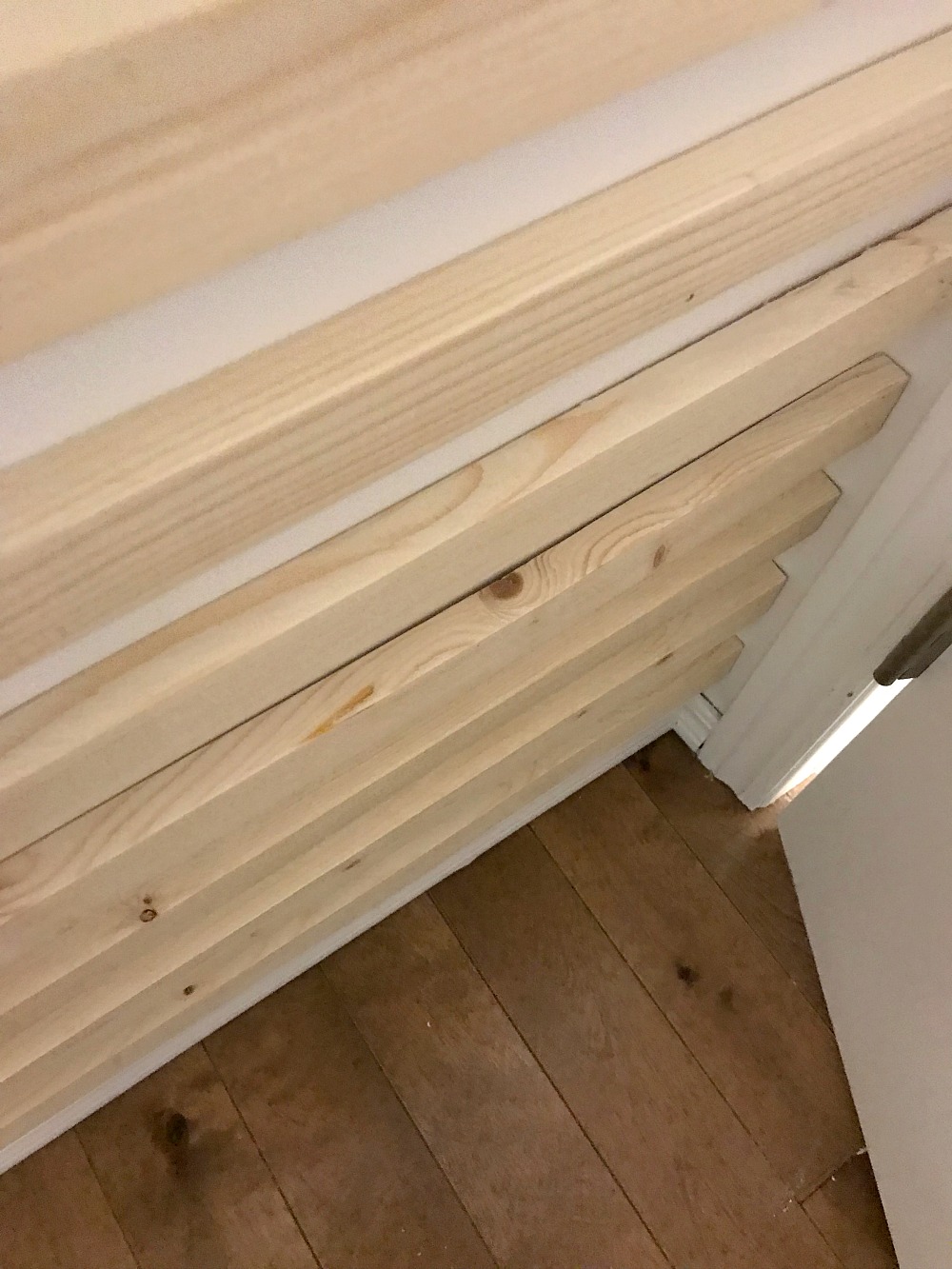 I didn’t bother underneath each slat because I won’t see it, but in a full height slatted wall you would.