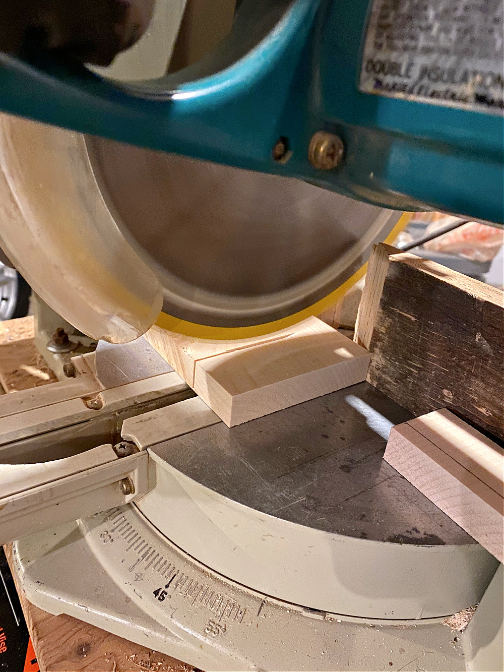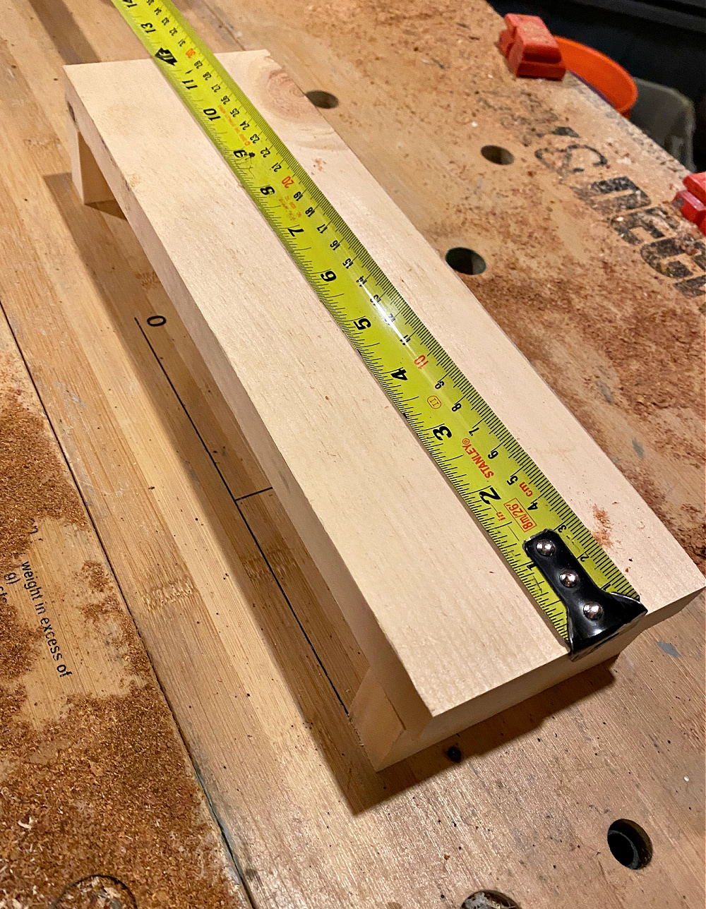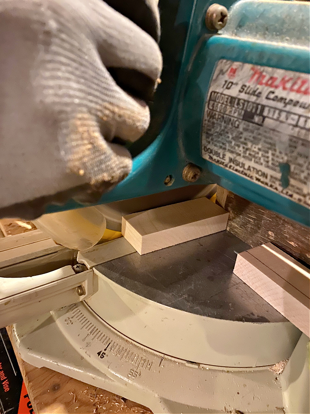 Cut your wood to length (11″ long to make it the size of mine). Then cut two additional pieces for the “legs”. My legs have a length the same width as the egg tray, with a height of 2″ (you can adjust this) so I cut a 2″ wide piece of wood from the same length of wood.