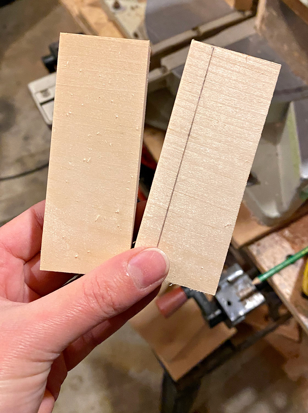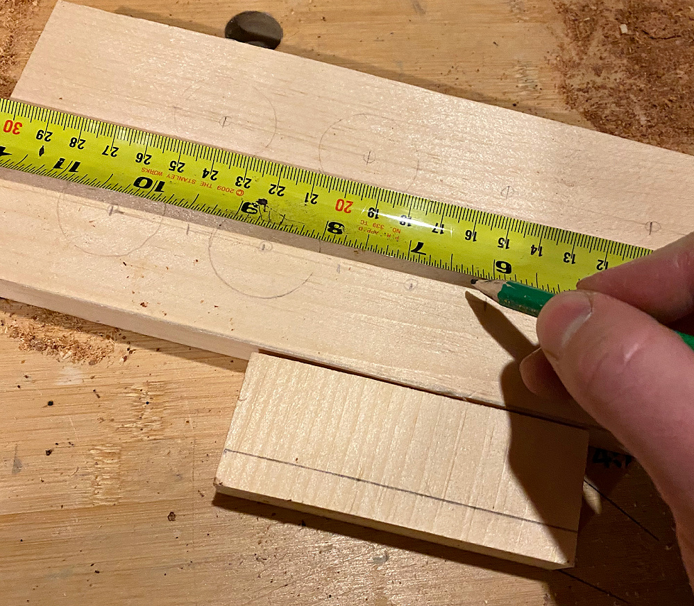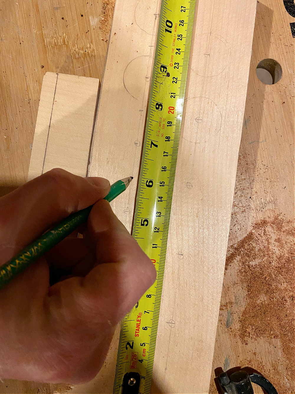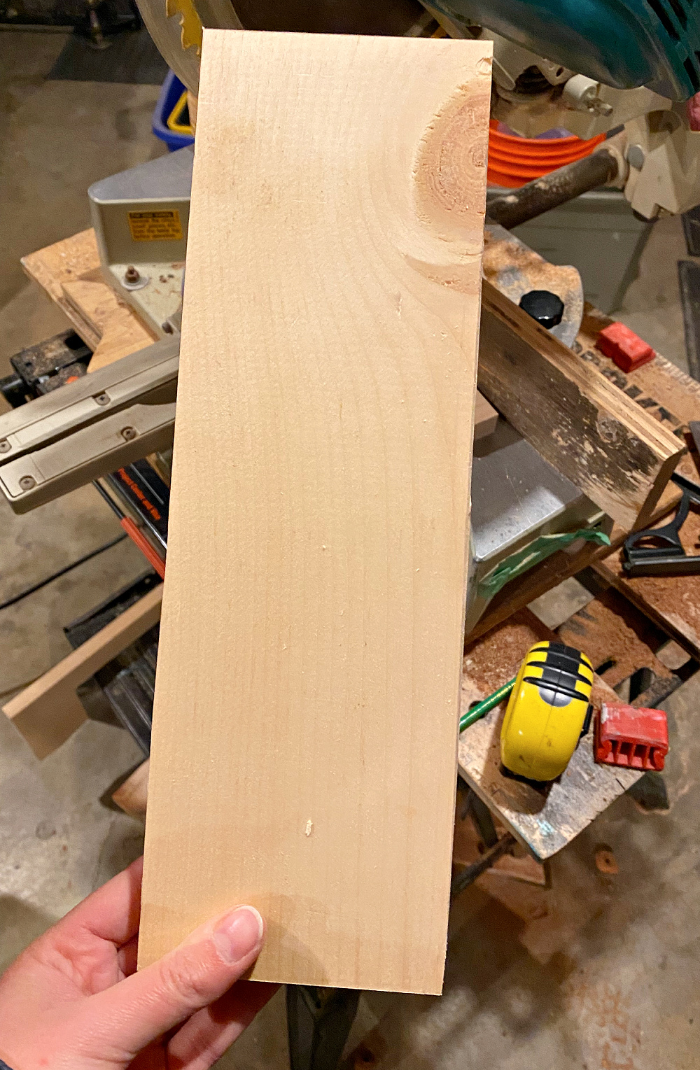 Cut your wood to length (11″ long to make it the size of mine). Then cut two additional pieces for the “legs”. My legs have a length the same width as the egg tray, with a height of 2″ (you can adjust this) so I cut a 2″ wide piece of wood from the same length of wood.
