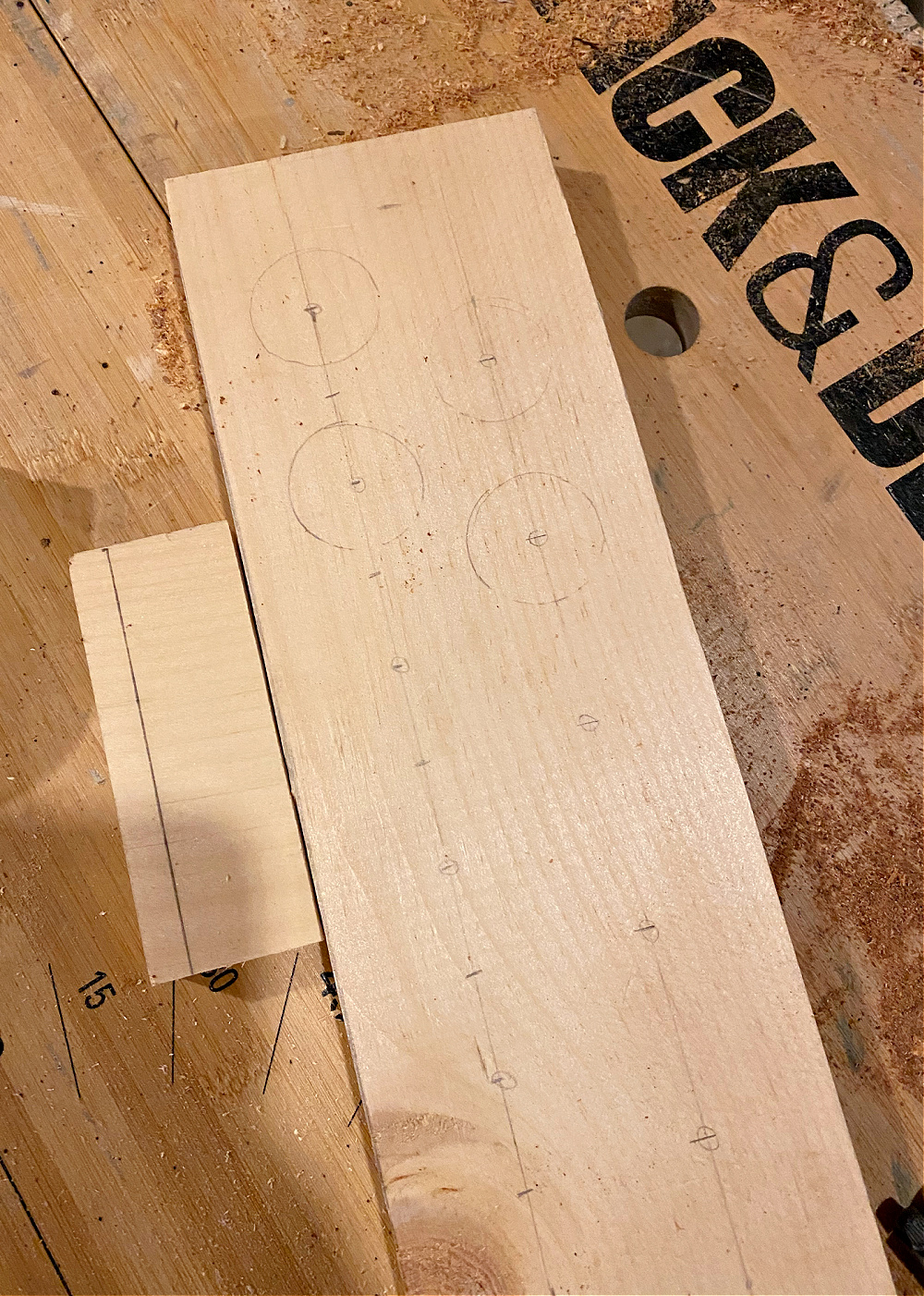 Then we pre-drilled a hole as a guide for the hole saw, to make sure we drilled these holes exactly where we measured them out to be:
