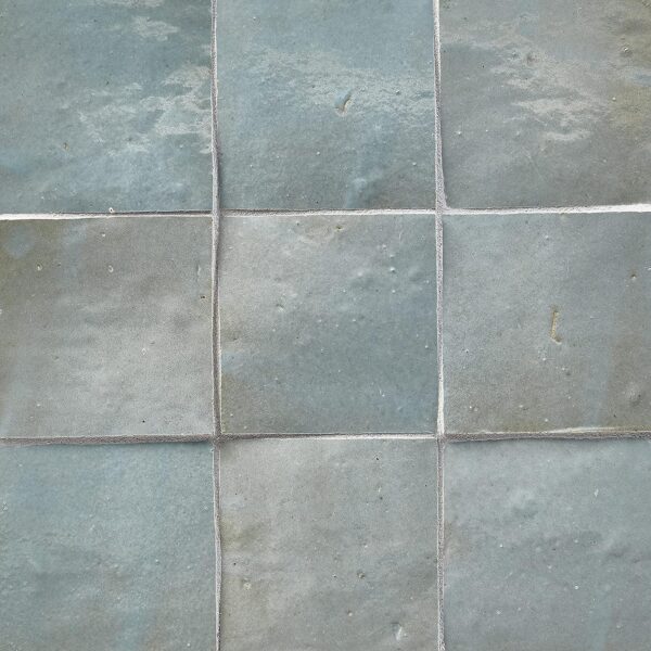 I pictured the soft aqua wall tile (which I’m officially obsessed with) looking equally good as a kitchen backslash or tiled shower surround. Once installed, this tile has an earthy irregularity with a beautiful glossy gleam. It echos the subtle texture of the floor tile, but in a glossier, more colorful finish. I think these two tiles work really effortlessly together.