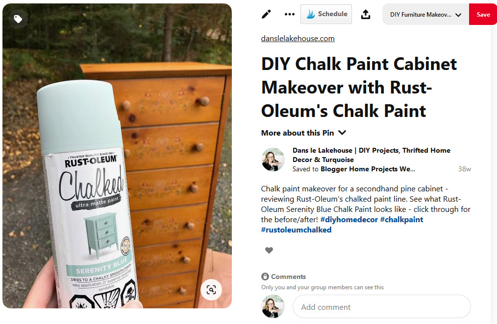 My goal is TRAFFIC and traffic from my own pins is ideal but I’m not super concerned about Pinterest followers or stats. So, if someone pins my own Dans le Lakehouse content and it takes off, I pounce on that momentum and re-pin their pin of my content to my group boards, niched boards, and share in Tailwind Communities.
