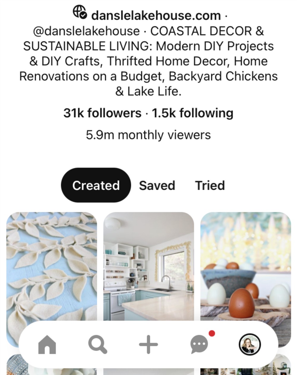 I’d love to connect with you, so I encourage you to find me on social media – I’m @danslelakehouse on Instagram, Twitter , TikTok, and Facebook. I’m most active on Instagram, so feel free to DM me any Pinterest related questions. If you’d like to see my pinning strategies in action, be sure to follow me on Pinterest too!