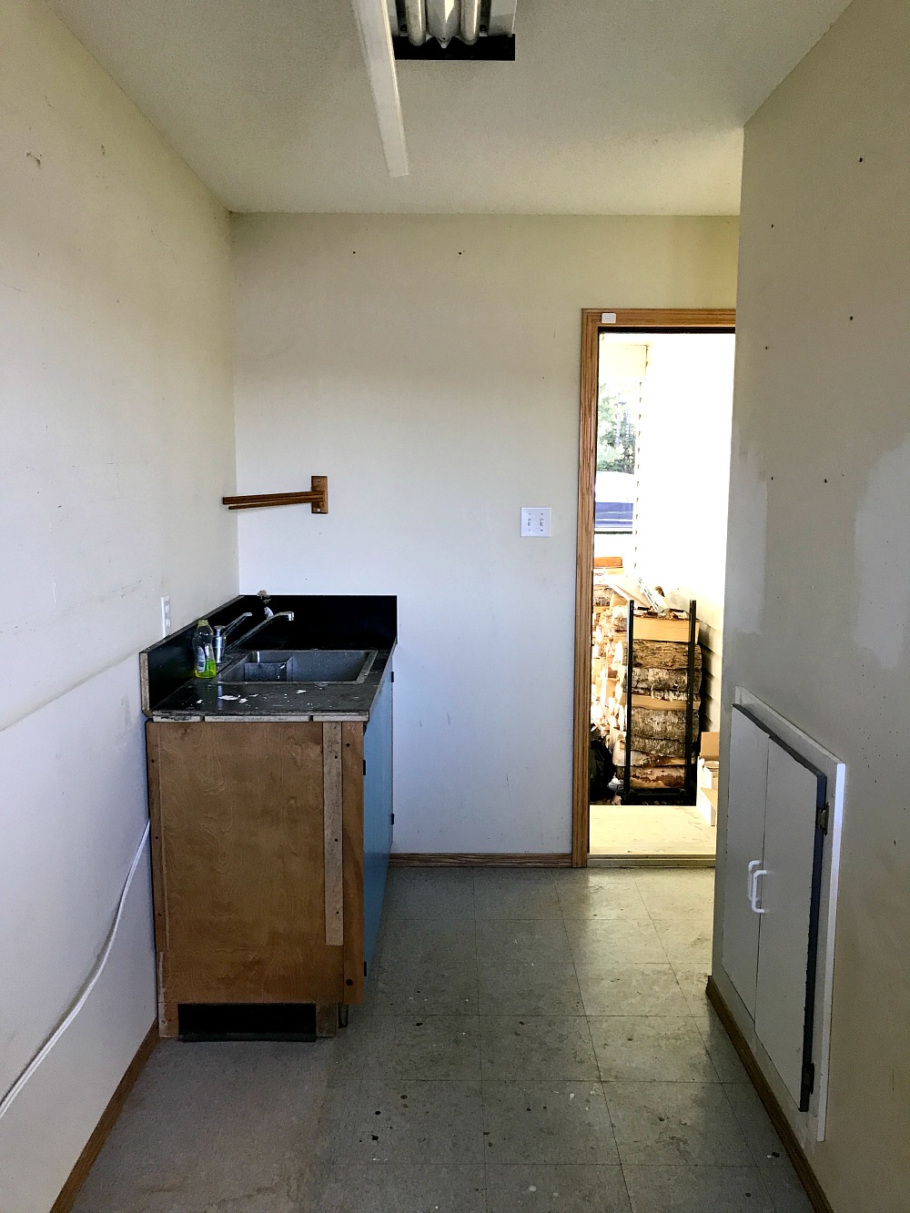 But let’s backtrack a little: for all of my new readers, this craft room makeover was dubbed the “fish room makeover” for so long because this weird little room (with two exterior doors, no interior access to the house, and a sink) was designed for gutting and cleaning fish. It makes sense for this lakeside location, but not for us.